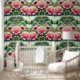 Aquarellfarbene Rosa Peonies und Grünflächen-Tapet Tapete