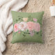 Das Kissengeflecht mit einer Aquarelldarstellung von Pfingsten und Federblumen in Rosa und grünem Set vor einem gedämpften grünen Hintergrund. Ideal für den Frühling. Kissen mit Kissen und Kissen sind ideal, um Stühle, Sofa und Bettwäsche farblich zu gestalten - ideal für fast jedes Zimmer in Ihrer Zuhause. Weitere Größen sind erhältich.