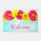 Diese individuelle Türmatte wurde mit einem einzigartigen Bild von gelben und tiefrosa Gänseblümchen entworfen, das digital an ein Aquarellbild angepasst wurde. "Willkommen" wird in großen, leicht lesbaren Schriften in einer Farbe hinzugefügt, die zu den Blüten passt. Die Matte misst 24" x 36" und hat eine glatte Filzfront und einen rutschfesten Latex hinten. Es hat auch eine verstärkte Kante, um dem Ausgraben zu widerstehen, ist sowohl verblassen & mildew resistent, und reinigt leicht mit einem Spray von Wasser. Ideal für überdachte Einstiegsanlagen wie z.B. Veranda, Appartements, Büroräume, Wohnungen, usw. Wenn Sie Fragen zu dieser Matte haben oder mir helfen möchten, dieses Design auf einen anderen Artikel zu übertragen, können Sie mich über Zazzle kontaktieren. Ich helfe Ihnen gerne dabei, das Bild und die Schrift richtig einzustellen.