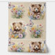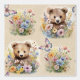 Aquarellwaldtiere zornbrauner Teddybär, pastellfarbene wilde Blume und Schmetterling auf Texturcreme-Hintergrund.