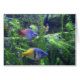 Blaugelbe und blau-rote Fische schwimmen in den grünen Algen.