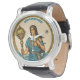 Uhr, Vintage Männeruhr mit schwarzem Lederarmband