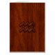 Ein Aquarius zodiac Schild auf einem mahagonifarbenen Holzkorn Stil Textur Print Hintergrund. Ein modernes, elegantes Design für eine großartige Geschenkidee für den Geburtstag. Verwenden Sie den Link "Diesen Designer Gefragt", um uns mit Ihren speziellen Designanfragen oder für Hilfe bei Ihren Anpassungsbedürfnissen zu kontaktieren.