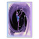 Dieses ist ein Zeichnen eines zeitgenössischen Balletttänzers in einer großen Arabeskerückseite. Es ist in Malvenfarbenem, in Lila und Blau und hat ein gewirbeltes Hintergrundmuster.
