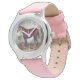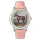 Kinderuhr aus Edelstahl mit rosa Lederarmband