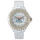 Eine wunderbare Damenuhr mit weißem Armband und grün-weiß-kariertem Ziffernblatt. Trägt sich ganz fabelhaft. Exzellenter Druck, sehr klare Farben. Schönes Design.