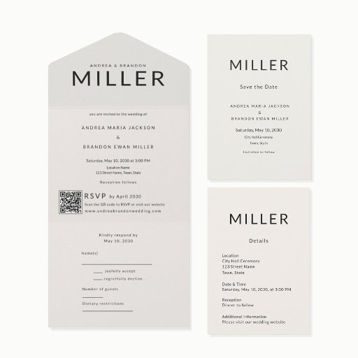Designed for modern civil ceremonies, city hall weddings, and contemporary celebrations, this enclosure card complements an all-in-one or modular wedding suite while maintaining a cohesive editorial aesthetic.