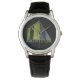 Uhr, Vintage Männeruhr mit schwarzem Lederarmband