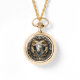 Ein Geschenk für Aries: eine wunderschöne und aufwändige Jugendstil-personalisierte Halskette-Uhr, die einen geschnitzten Widder mit Gold- und Diamantakzenten darstellt. Das höchste Juwel ist das Symbol Sterne. Das Wort "Widder" kann personalisiert oder wie besehen behalten werden.