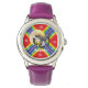 Uhr, Kinderuhr aus Edelstahluhr mit lila Lederarmband