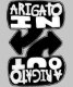 This design features hand-drawn text prominently displaying 'Arigato In' and 'Arigato Out', making it a wonderful bilingual piece.