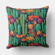 Grüne Kakteen und farbenfrohe Blume auf dunkelblauer Basis für den Südwestfan. Brillieren Sie Ihre Zuhause mit diesem nahtlosen Muster, das an jeder Kissengröße oder -form funktioniert.