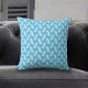 Kissen in reflektierenden türkisfarbenen Squiggle-Formen auf einer blauen Grundfarbe.