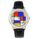 Farbarmband! Uhr modernen Stils mit scharfen Linien und Farben. Stil Piet Mondrian, niederländischer Maler, der Schönheit und Einfachheit in seiner Kunst vereinte
