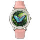 Angepasste Mädchenuhr mit niedlichem Morpho-Schmetterling-Foto. Personalisierbare Armbanduhren für Kinder. Einzigartige Geschenkidee für Mädchen. Erstelle eine für besondere Tochter, Enkelin, niedlichen Cousin, Freund, Kind, Enkel, kleine oder große Schwester, Mutter etc. Schönes Tierbild mit Zahlen und eleganter Wirbler Schrift-Typografie-Vorlage. Auch schön als einzigartiges Weihnachtsgeschenk für den Urlaub. Enthält niedliches rosa Farbband. Fügen Sie Ihren eigenen Namen oder Monogramm Anfangsbuchstaben hinzu. Hübsche Uhr für sie. Laden Sie optional Ihr eigenes Bild hoch.