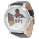 Uhr, Vintage Männeruhr mit schwarzem Lederarmband