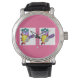 Uhr, Vintage Männeruhr mit schwarzem Lederarmband