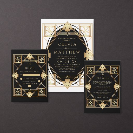 Art Deco Black and Gold Geometric Wedding Acryleinladungen