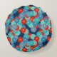 Art Deco Blume - blau, türkis und rot Rundes Kissen