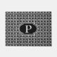 Doormat mit Monogramm in einem Art-Déco-Chinesisch-Schachtelmuster in klassisch schwarz-weiß