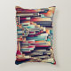 Unique pillow with a cityscape in bold colors and art deco architecture.