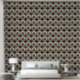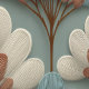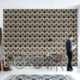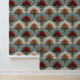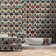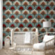 This Art Deco pattern features stylized fan-shaped florals arranged in a harmonious, repeating layout, combining soft cream tones with muted blue and bold terracotta accents. Fine linework gives each petal texture and dimension, while the symmetrical structure creates a refined, vintage-inspired rhythm. The overall effect is warm, elegant, and subtly retro—perfect for décor that blends classic geometry with a modern color palette.