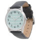 Diese Männeruhr hat ein kunstvolles Deko-Design von überlappenden Diamanten in Verditer (grün) und Blau auf einem Feld von Weiß.