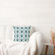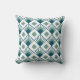 Dieses Kissen hat eine Art Deko-Design von aquamarinen Diamanten mit diagonalen Linien und Meeresboden grünen Diamanten auf einem Feld von Weiß.