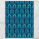 Papier in einem Vintagen Art-Deco-Tapeten-Muster, basierend auf einer stilisierten Feder in Cerulean- und Pfauenblau auf dunkelmarinebasischem/indigoblauem Hintergrund