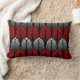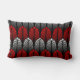 Kissen aus Lumbar in einem Vintagen Art-Déco-Tapeten-Muster, basierend auf einer stilisierten Feder - auf einem schwarzen Hintergrund in silbergrauen/grauen und tiefchinesischen Rot