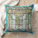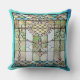 20" x 20" werfen Kissen mit einem Bild eines wunderschön aufwändigen Art Deco Buntglas in Rosa, Blau und Grün auf Aqua Buntglas. Aqua fleckte Glas zurück. Sehen Sie sich die gesamte Roaring 20s Kissen Kollektion im DECOR an | Kissen Abschnitt.