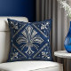 Art Deco Fleur-de-lis Blauer Marmor und Perl Kissen