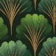 This Art Deco pattern features elegant fan-shaped motifs in layered shades of green, creating a lush, botanical feel with a glamorous vintage twist. Gold-toned linework radiates from the center of each form, adding depth and a refined sense of structure. The repeating scalloped arrangement evokes palm leaves and classic 1920s design, blending natural inspiration with sophisticated geometric symmetry.