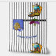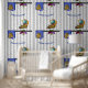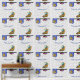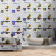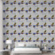 Umgestalten Sie Ihre Küche, den Coffee Shop oder die Bäckerei mit diesem originellen Tapetendesign, das eine eklektische, farbenfrohe Mischung aus einer Clarisse Cliff inspirierte whimsical Keramik Coffee Pot, Cup und Saucer kombiniert mit einer traditionellen Chinoiserie Cookie Jar und anderen Art Deco Accent das ganze Set vor einem schwarz-weiß gestreiften Hintergrund und einer gewölbten Caption, die Sie personalisieren können.
