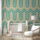 Art Deco Muster 05 - Aquamarin auf Off-White Tapete