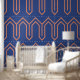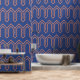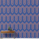 Art Deco Muster 05 - Orange auf Preußen Blau Tapete