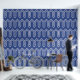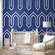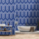 Art Deco Muster 05 - Weiß auf Preußen Blau Tapete