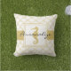 Dieses Design zeichnet sich durch ein Seepferd mit einem goldenen Effekt Meereswellen-Muster aus. Das im Art-Déco-Stil gehaltene Küstenbild bildet ein modernes und einzigartiges Kissen im Freien mit personalisiertem Text für Strandhaus.