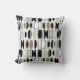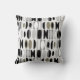 This throw pillow has an art deco design made of ovals and half ovals in black, white and shades of gray.