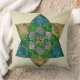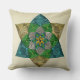 Das elegante, originelle Design dieses Kissenpilzes besticht durch eine große, zentrierte Blume, die mandala geformt wurde, und inspiriert sich durch Art Deco und hochstilisierte Peacock Feathers. Hinzu kommen Techniken, die ein metallisches Imitat in den Farbtönen Bronze, Türkis, Smaragdgrün und Pfennig schaffen. Wiederholung des Mandala-Musters auf der Rückseite.