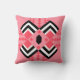 Dieses Kissen hat ein Art Deko quilt-inspiriert Design von Diamantformen in schwarz, weiß und rosa auf einem Feld von Wassermelone.