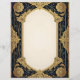 Gold Blume und Blätter auf schwarz-grünem Hintergrund schaffen einen schönen und verzierten Rahmen für diese Schreibwaren. Der Rücken ist schlicht, in einem angenehmen Schatten an der Vorderseite. Klassisch und elegant, perfekt für Korrespondenz, Flyer und Einladungen.