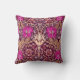 Kissen in einem Vintagen William Morris, Jugendstil, Blumendruck von Honigsuckle-Reben und -Nelken, digital verstärkt und farbig, in Pflaume, Beige, Bräune und Creme, auf einem lila Hintergrund von Auberginen