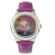 Uhr, Kinderuhr aus Edelstahluhr mit lila Lederarmband