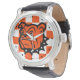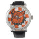 Orangefarbene, schwarz-weiße Artesia Bulldogs "Pride" Watch mit Bulldog Maskottchen Kopf über Orange und Weiß Schachbrett. (Immer wenn dieser Bulldog ohne Copyright für meine Skyrider Designs gesehen wird, wird er gestohlen und ist nur legal in diesem Laden erhältlich)