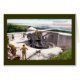 Eine Postkarte aus der Zeit des Ersten Weltkriegs, auf der das amerikanische Artilleriegeschützwerk dargestellt ist, das sich auf das Feuer vorbereitet. Ein Gedicht lautet "Ich bin sehr froh, dass du den Anruf von Onkel Sam beantwortet hast - aber denke nicht, dass ich dich nicht vermisst bin. Denn Gott weiß, dass ich es bin."