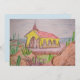 Eine Aquarellstift-Skizze und Malerei der Alto Vista Kapelle in Aruba mit Karibischem Meer und verschiedenen Kakteen, Felsen und dornigen Sträuchern.