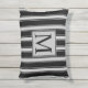 Aschen-Grau-und Weiß-Streifen auf schwarzem Kissen Für Draußen