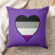 Throw pillow Throw pillow with heart design in colors of asexuality; black, gray, white and purple, stripes pride flag, rainbow love design, on purple background