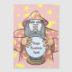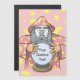 Alter Zauberer mit rosa Umhang, der Kristallzauberkugel betrachtet.